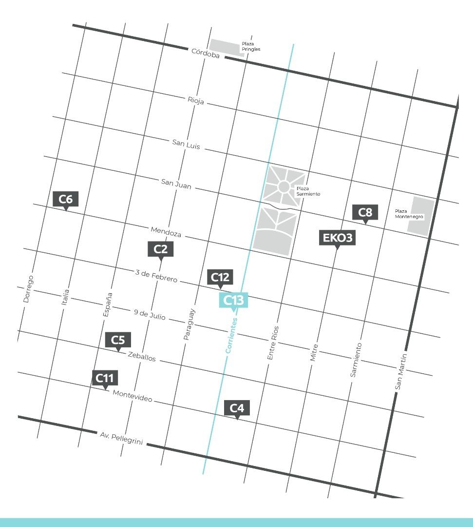 Toda la instalación eléctrica estará embutida, con cañerías conductores reglamentarios, tapas y llaves para iluminación y fuerza motriz. Se proveerán artefactos de iluminación en balcones, áreas comunes y en el hall principal de acceso al edificio. Cada departamento dispondrá de las canalizaciones (cañerías vacías), para cable TV, y telefonía.